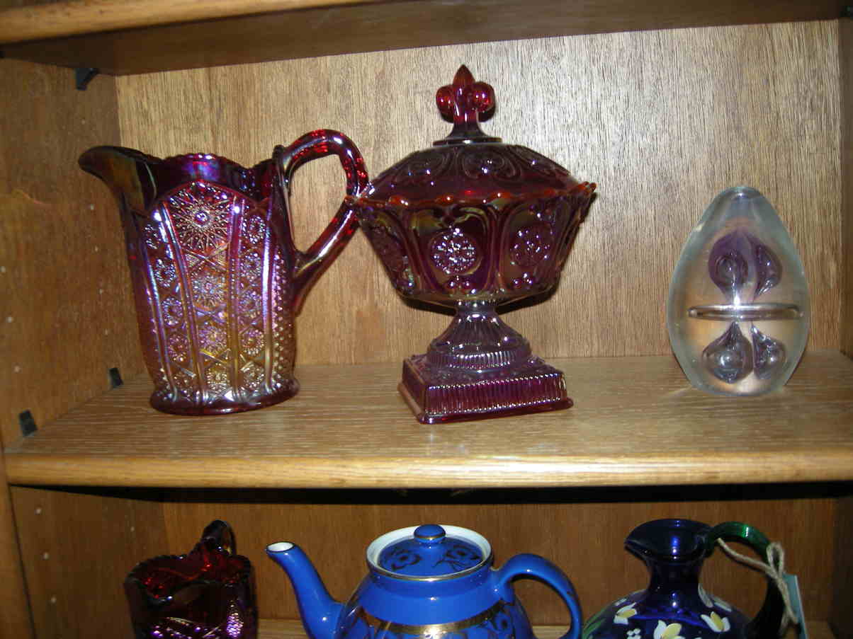 Several pieces of carnival glass
